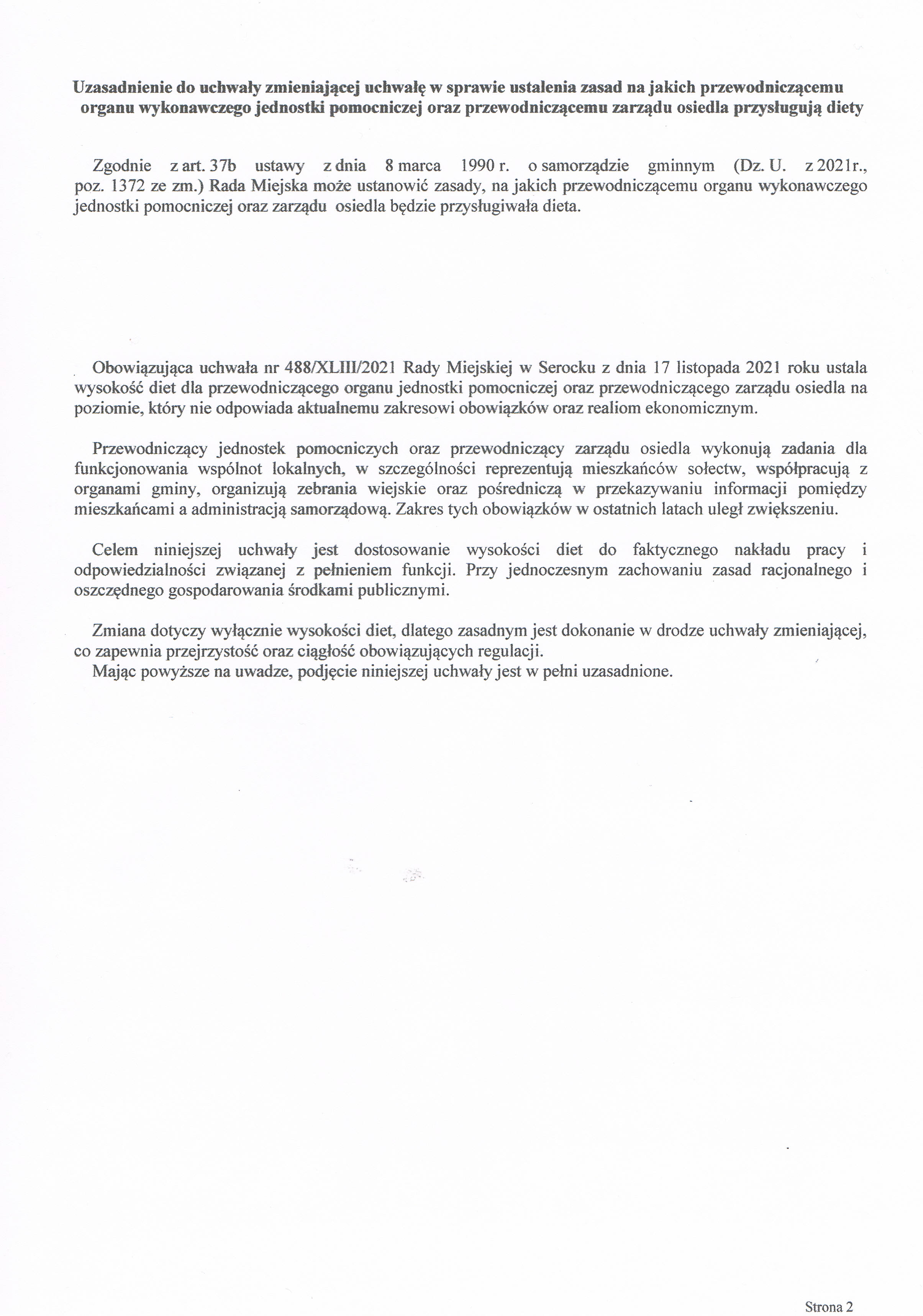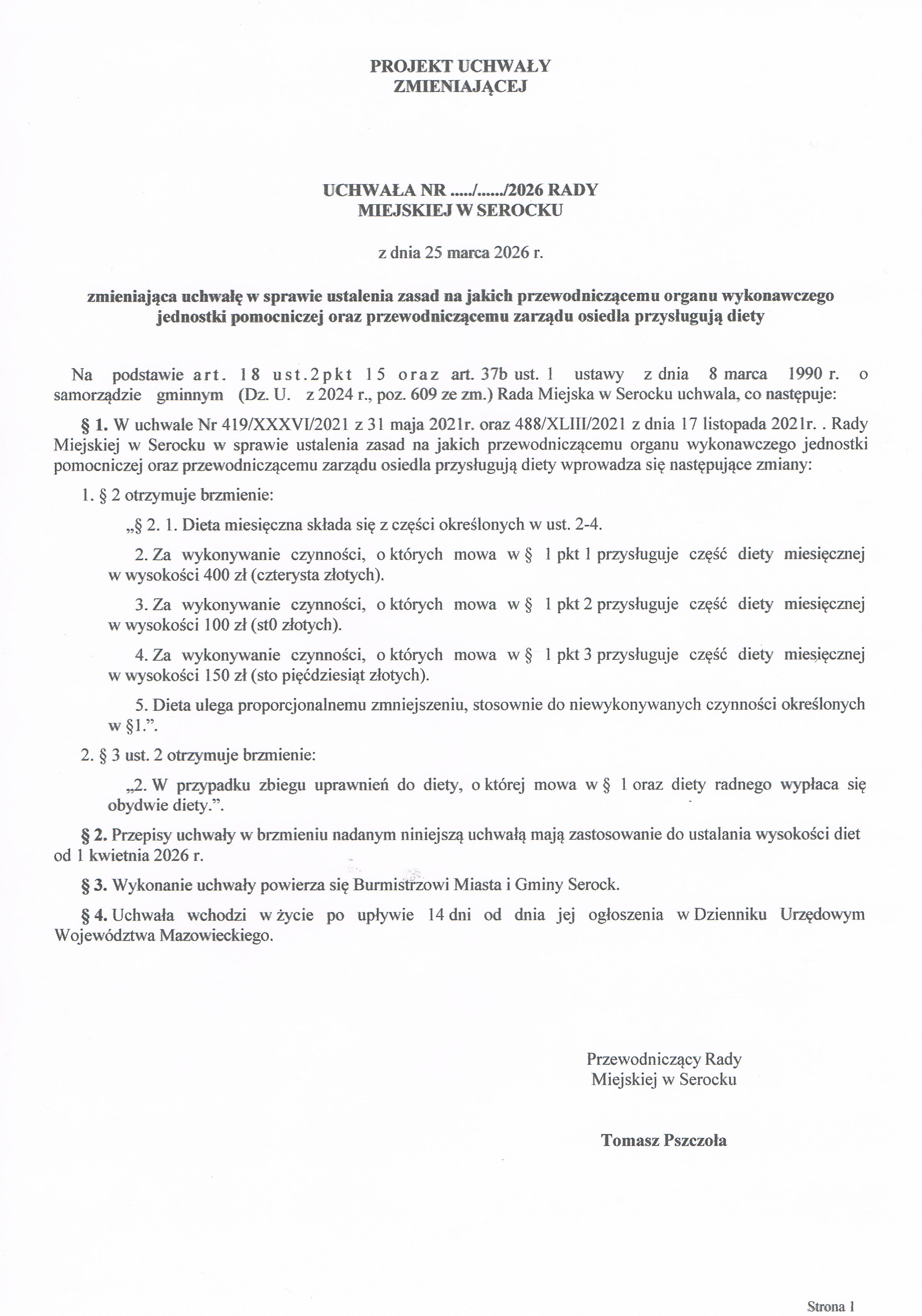 Zaopiniowanie projektu uchwały zmieniającej uchwałę w sprawie ustalenia zasad na jakich przewodniczącemu organu wykonawczego jednostki pomocniczej oraz przewodniczącemu zarządu osiedla przysługują diety.